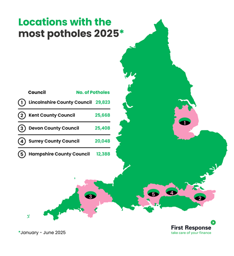 The first half of 2025 has already seen tens of thousands of potholes reported across the UK. Lincolnshire County Council leads the way, logging almost 30,000 potholes between January and June - making it the worst-hit area so far this year.